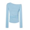 Fitted Asymmetric Neckline Blue Long Sleeve