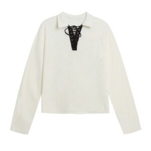 Lace-Trimmed Casual Long-Sleeve Top